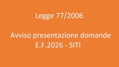 LEGGE 77/2006 – SITI – AVVISO E.F. 2026